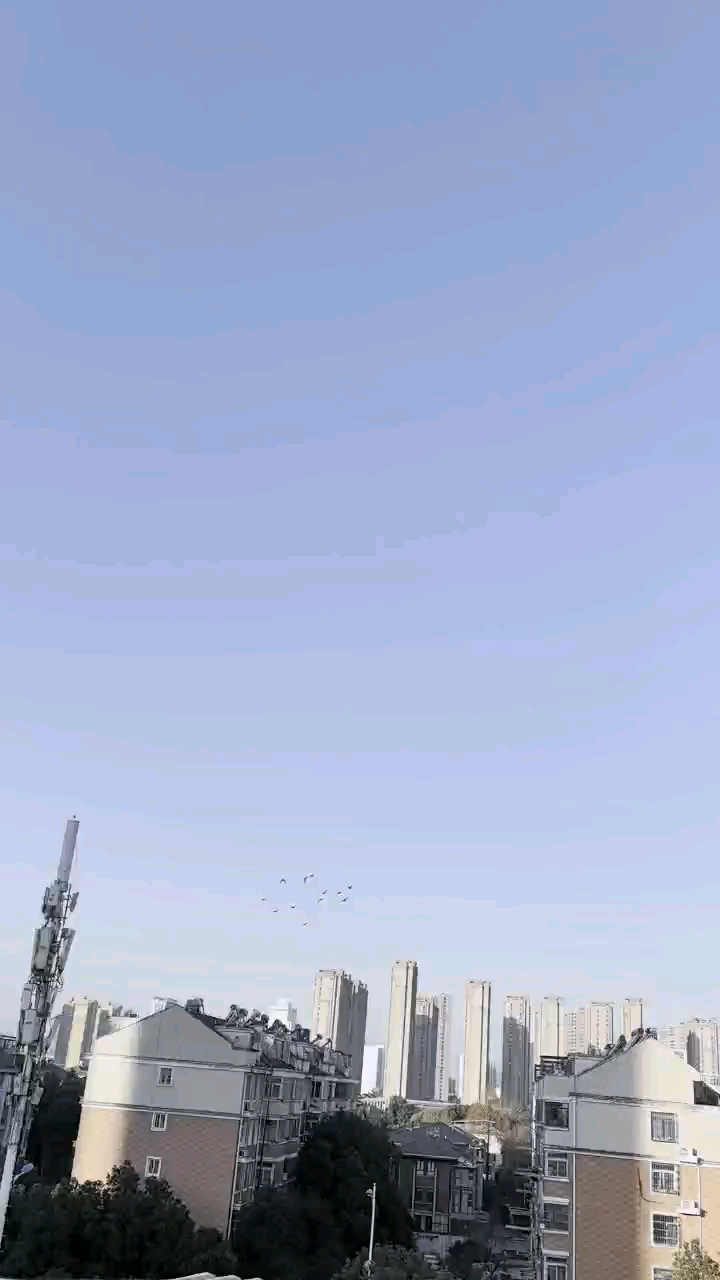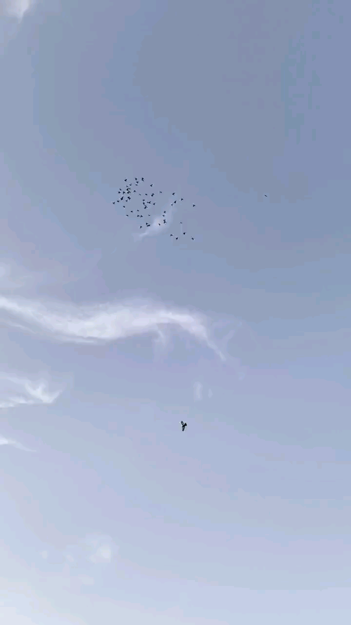 大家周末愉快!早晨天气格外晴朗,8点上鸽舍放鸽子飞,走趟子回来拍的视频,先回来十几羽在鸽舍上空飞翔,几分钟后大群鸽子回到鸽舍上空飞翔,飞1小时就拿下训练旗迟迟不肯降落。