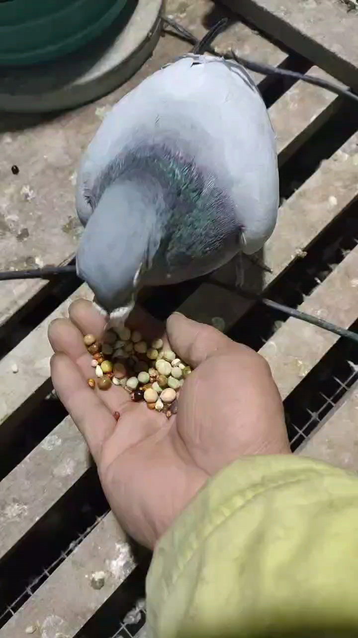感谢网友互动!小鸽子出壳前一两天,就要单独喂点糙米50%营养小饲料摧奶,小鸽子出壳一星期以内,上午种鸽单独喂一餐,营养小饲料料70%糙米20%油菜籽10%,一星期后至20天上午喂一餐,慢慢减少糙米增加少量碗豆,20天后种鸽晚上就喂一餐,饲料要品种齐全,种鸽和小鸽子都要有饥饿感,这样才能喂好小鸽子。