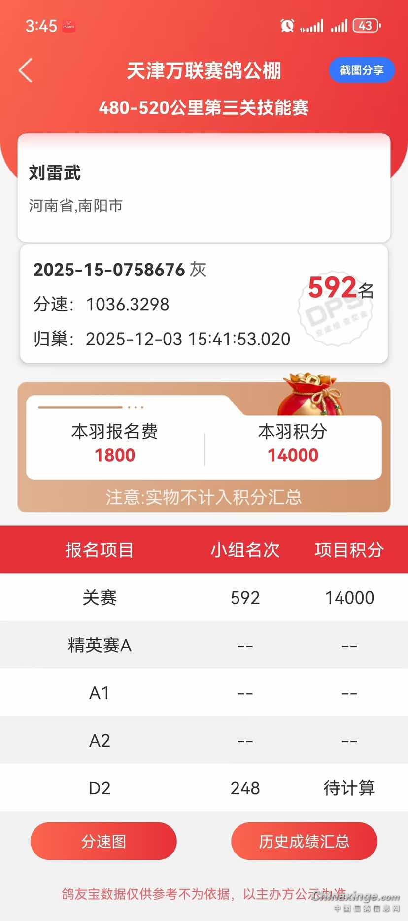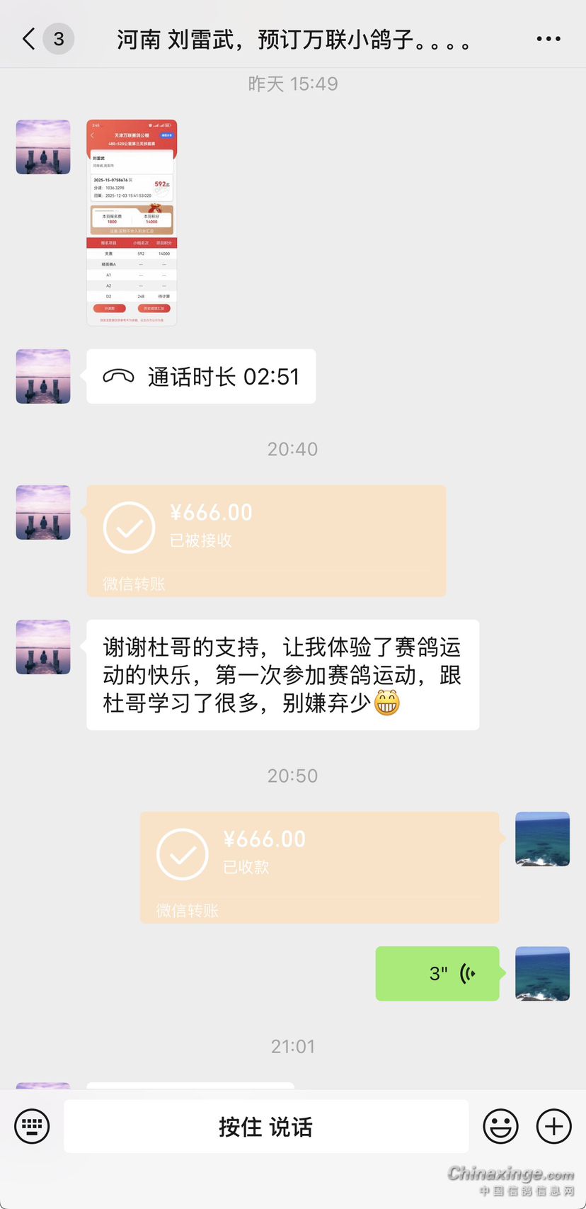 感谢兄弟的666明年继续大力支援,赛鸽精神源远流长,兄弟友谊长存!