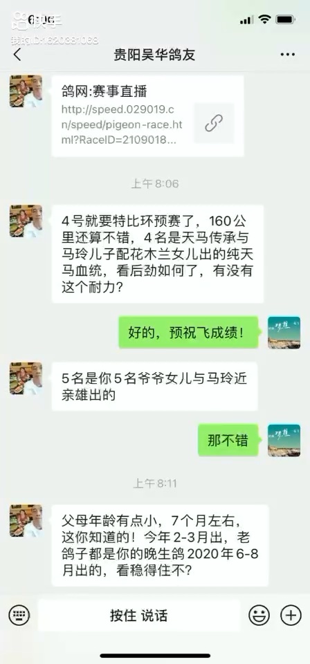 感谢吴华鸽友的反馈,希望比赛飞出理想成绩!共同开开心心养鸽,认认真真比赛,在赛鸽路上前进!