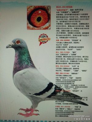 自已作出双重近血种鸽,父亲是同母异父作出,母亲是祖孙配作出,父母双方还都沾血,本身公棚奖鸽。