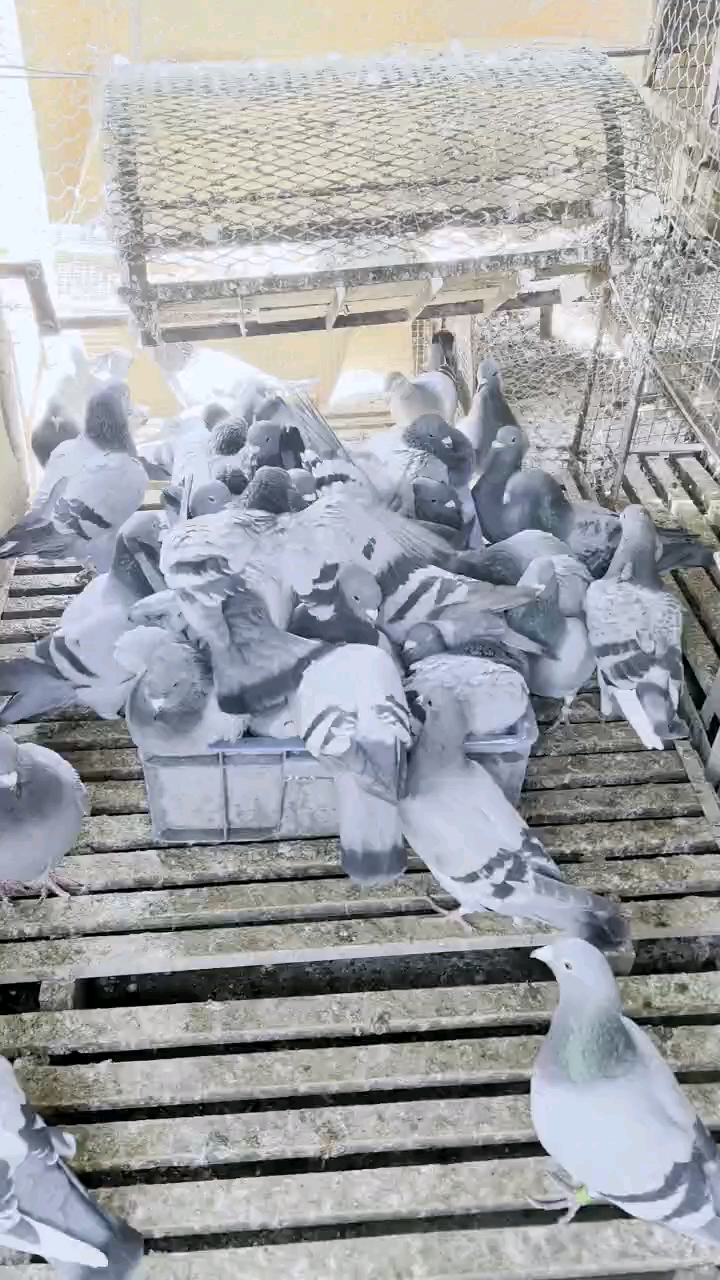 大家上午好!过的真快又到周末,8点上鸽舍阴天东北风,今天把刚出笼幼鸽跟大群一起放出,成鸽带着幼鸽就在鸽舍上空不远飞,持续近1小时幼鸽也能飞下来。 昨天傍晚又是雨又是雪,前几天阴雨绵绵潮湿大,正是检验鸽子肠道健康的最佳时机,阴雨天气才体现出教练员养功,外面潮湿大鸽舍内就要干燥,如果鸽子长时间排稀便水便,不用去比赛基本上就失败了。