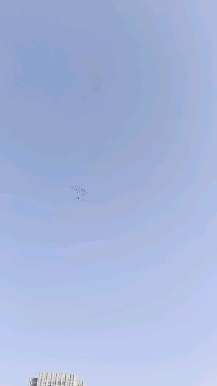大家中午好!早晨8点上鸽舍晴到多云,把鸽子放出去飞翔,扣下刚出笼不久的小鸽子,等大群鸽子走趟子飞走了然后再放出去,半个小时鸽群走趟子回来,带回来不知道是那位大师几十羽鸽子,就在鸽舍上空跟刚出笼小鸽子飞二十多分钟,咱鸽子慢慢降低飞行高度逐渐落舍,外来鸽子向着西南方向飞去。