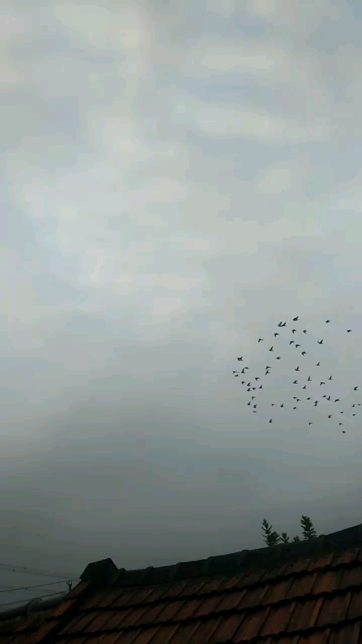 #赛鸽 #信鸽 #超远程信鸽 昨天工作忙,没开鸽笼。今天天色氤氲,朦朦胧胧,从早上到下午四五点钟下了一天的细雨。雨刚停,空气中还有秋意微凉水汽。打开鸽舍跳笼门,十几只小家伙离开冲出鸽舍,拥抱天空。西边的天空上还挂着几只排着队伍南去白鹭。煞是可爱!