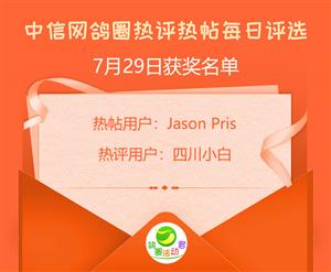 在这里小君君用虔诚的小手为jason pris和四川小白贴上7月29日的奖分榜,100积分