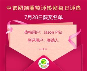 ,今日份奖分名单已送达,请铁子们注意查收,7月28日获得热帖和热评的用户是jason pris和赛鸽人,每人100积分
