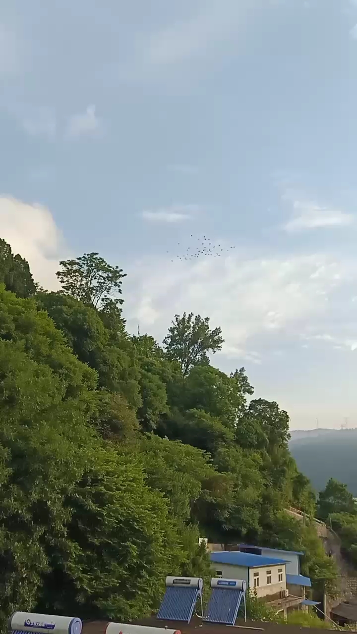 这是和谁的鸽子合群了,飞起来还有点队形。大家早上好!