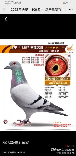 2022年秋季第一场比赛 丰台鸽会 前十获得7、8、9、10名。