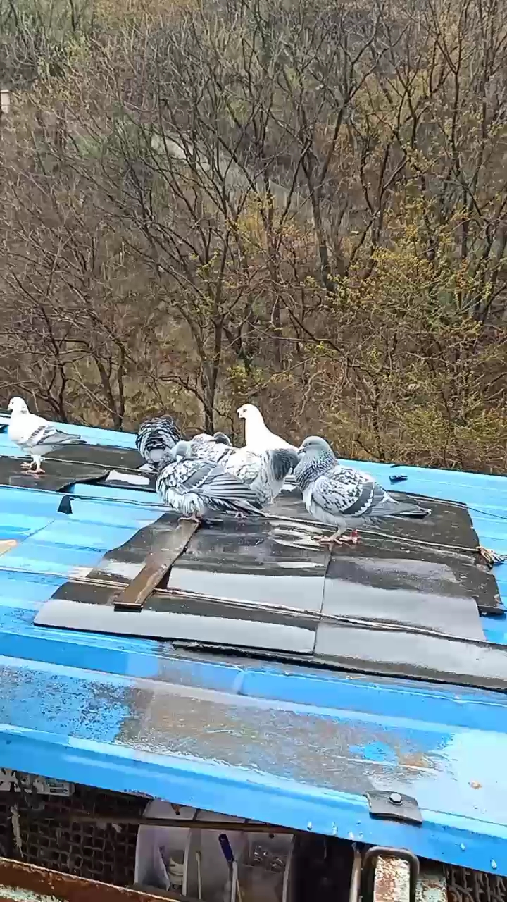 3月24日,小雨淅淅沥沥的下着,自2月26日为响应国家惠民政策旧城改造项目,拆除种鸽棚,自来水也断掉了,几只春赛鸽近一个月没有洗澡了,看着鸽子在雨中嬉戏,心理也很是着急。这楼顶防水工程也干个半截,扔下了。鸽友们,中午好。