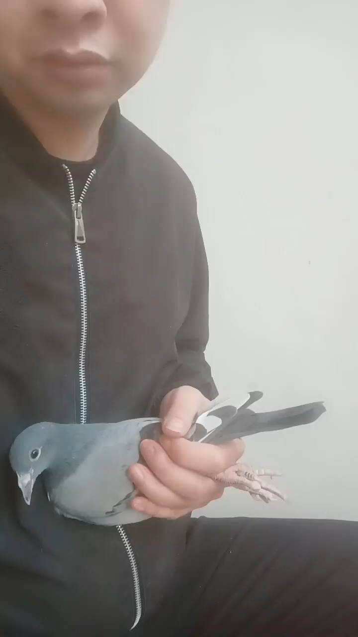 不知道哪里来的基因,父母鸽没有白条,出的小鸽子确都有白条。