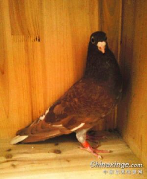 一家四口 公鸽子是红绛母鸽子是红轮加白条,出的小鸽子有一个红绛,一个红轮白条,应该是一只像父亲一只像母亲。至于公母,我看好像都是公鸽子似的。再过十多天就下窝了