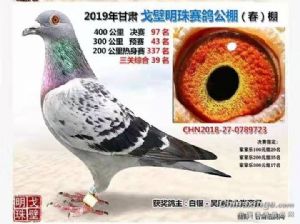 2、“神奇王子”CHN2016-11-0170501雨点黄眼雄,获得2016年秋季龙湾竞技(联盟国际)俱乐部南北四关综合鸽会,800环冠军、1000环冠军、6800环冠军,第一关现场指定单鸽指定10000K冠军、30000K冠军,第一关现场指定一把抓1000K冠军,第二关专环单关成绩:800环季军,1800环季军,第三关现场单关单鸽500K季军,1000K亚军。父亲:CHN2011-11-160870(华兴将军*华兴金母外孙)母亲:CHN2013-11-157824(华兴金环729*华兴金环559)。作出直子:获得:2019年唐山阳光寄养棚四关鸽王51位。