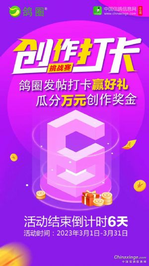 1、内容创作方向不限,要求原创作品,与信鸽主题相关。 2、图片帖图片数量至少3张,文字帖字数不低于50字,视频帖至少10s以上。 3、灌水、广告、重复创作、搬运抄袭等内容质量不达标的作品,不计入打卡统计数据。