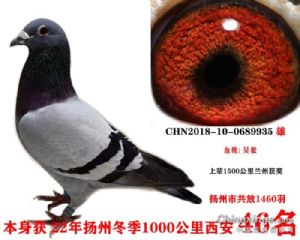 这小鸽脾气挺暴呀,第一窝就出了一只,也是自己最喜欢的一只,去年全平辈前三关都是高位,决赛撞伤飞了一星期归巢双腿撞断。和这只一样也是暴脾气,希望今年你有好的表现,上岸全靠你了