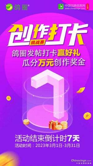 1、内容创作方向不限,要求原创作品,与信鸽主题相关。 2、图片帖图片数量至少3张,文字帖字数不低于50字,视频帖至少10s以上。 3、灌水、广告、重复创作、搬运抄袭等内容质量不达标的作品,不计入打卡统计数据。