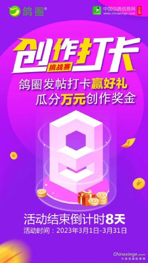 1、内容创作方向不限,要求原创作品,与信鸽主题相关。 2、图片帖图片数量至少3张,文字帖字数不低于50字,视频帖至少10s以上。 3、灌水、广告、重复创作、搬运抄袭等内容质量不达标的作品,不计入打卡统计数据。