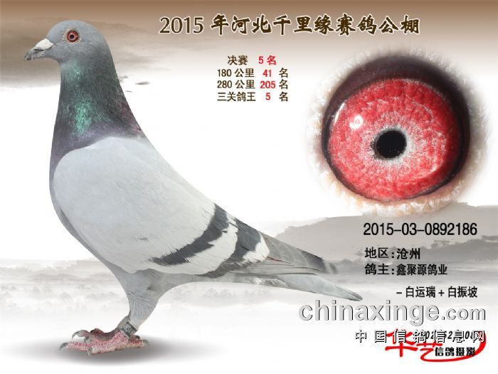 惊喜缔造者之黄金配对:雄*灰*砂,2015年千里缘公棚三关鸽王五名,决赛五名。此鸽体型壮硕,上手舒服,霸气中带有一种大将风度。 雌*雨点*黄,血统(考夫曼)体型中等,手感舒服,一字尾下压肌肉饱满,一羽不可多得的种雌鸽。当年幼鸽500公里决赛归巢时领先本场本金四名达十分钟。但此羽爱鸽归巢时撞房后电线,因等鸽打钟赛后才被找到,与大奖失之交臂。 2016年第二窝出雏两羽雨点,0015755.0015760两只同窝同交千里缘公棚,惊喜频传。0015760荣获热身赛88名,0015755荣获决赛351名,完美证明了它们的合配。