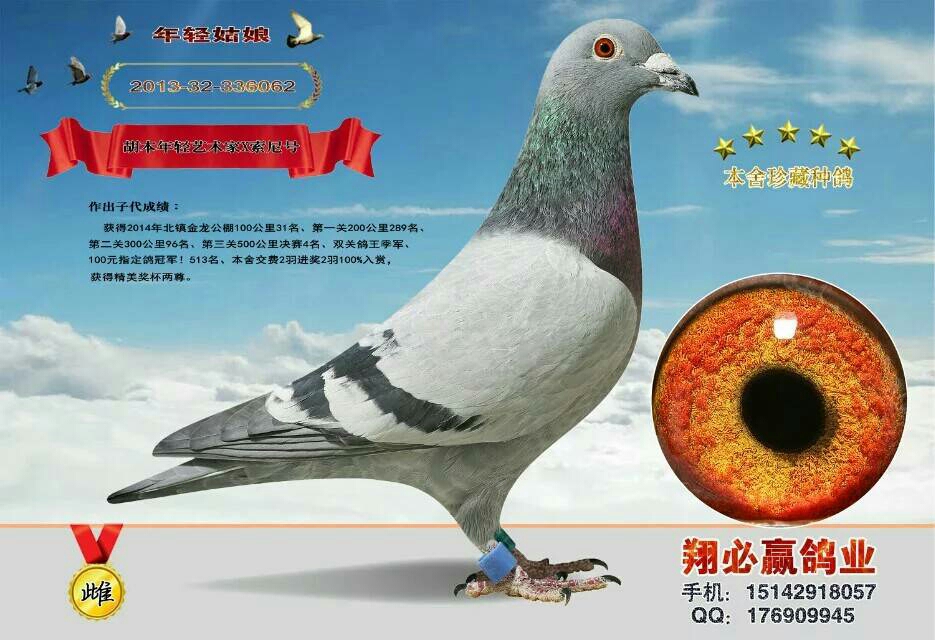 春,来临之前,大街小巷充满了节日的喜庆,满天的烟花消散了雾与霾,久违的阳光多么温暖却驱赶不走鸽棚的清冷,信鸽保卫战刚刚结束,虽然尽了最大的努力,可现实不容乐观,庆幸的是在这次新城疫突发事件中并没有清棚,剩下两只健康的种鸽,一雌一雄同父同母所生。无论心里再多的伤痛,我依然坚强起来,一辈子不抽烟喝酒可以,一年要是不养鸽子那真是生不如死,没有什么都可以,只是不能没有鸽子。为了准备迎接两只种鸽的回棚,这个年也是过得另有滋味。白天走亲访友必要的礼节,晚上清理鸽棚到半夜,刷地网、清粪便、擦拭栖架、喷洒消毒液、刷油漆忙的不易乐乎,用崭新的鸽棚来表示春节的喜庆。在春天即将来临之际,鸽友们都忙着给信鸽配对育种,我也开始按耐不住蠢蠢欲动的内心,准备育种前的防御,大年初一开始用育苗,相信待春暖花开时就可以作育了,也许种鸽的数量极少,做管理更为周到特别谨慎。 对于同父同母后代配对也做了很多资料翻阅,持反对看法的极多,我并非要极度近亲回血只是迫于无奈,在隔离期间自然成对, 两只鸽子父母都是戈马力原舍种鸽作育,同父为戈马力秃头199曾孙。虽然是同父母但不是同窝,个体上也有差异,雄鸽为2009年的「破晓寻梦769」,体型偏大,翅膀有力,主副羽衔接完美,龙骨耻骨在同一线,面纱上浮底沙下沉,眼志底沙混为一体,裙边内线扣。相比之下2011年雌鸽「破晓寻梦924」的自身条件就略差雄鸽一点。极度近亲看合配不合配,有的鸽子近亲育出的子代超越上代,有的鸽子近亲育出的后代残弱病,并不是所有的鸽子都适合近亲,都说詹森的耐近交,这次可该实验戈马力了,鸽友们有什么建议可以说下给些指导意见,对于同父母的后代育种我也是第一次,鸽友们千万不要学我,我也是迫于无奈,对于棚中仅存的两只信鸽只能这样了,也想过引种,可引种不像去菜市场买鸡蛋那么简单,什么血统的鸡蛋买回来都能做出同样美味的番茄炒蛋,引种的路很长,可能一年两年也许会是一辈子。看着两只鸽子在近30平方的鸽棚里同出同归夫唱妇随,心里也有一丝丝安慰,我也更加的细心的呵护着,对于将要作育的后代心中仍是一个谜团,也许时间才是验证的最好结果,但我相信有爱就有希望。
