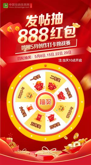 发帖打卡赢现金豪礼,四轮红包抽奖等你来。鸽圈5月创作打卡挑战赛来了!每周打卡都能参与现金红包抽奖,打卡满20天还能参与评选,赢取大额积分、惊喜实物礼包!
