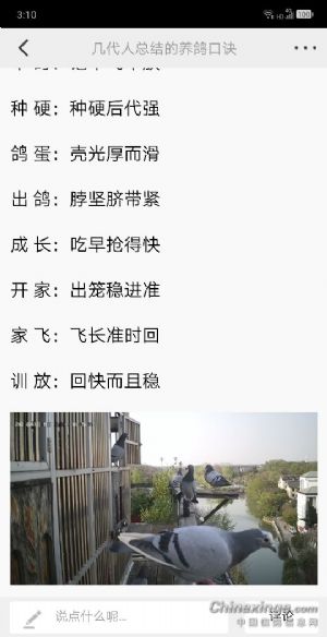 大家上午好!早晨天气良好,鸽子放出去老王十几羽鸽子尾随其后,最近他是敞笼饲养状态,没飞十分钟老王鸽子纷纷落下,还把我刚出笼的几个幼鸽带过去,1小时家飞结束几个小鸽子还在他鸽舍上玩耍,喂鸽吋拿食盆晃动发出声音,小鸽子一个个从他鸽舍上飞回来,两家鸽舍离有50一60米距离,他是大部分时间是敞笼饲养,小鸽子经常进咱笼咱从来都给放出来,有时放出去还回来就呛一下水放出,前些年咱小鸽子也经常往他笼里进,他抓住基本上就不给了极少数放出来,有一羽喷点灰记念环小时进他笼,问他他说没进他笼,结果一年以后记念环喷点灰回来了,找不到跳笼门口就在旁边网子上想往里进不去,离我只有一米多远看的清清楚楚,连脚环号都看的一清二楚,他打口哨才把鸽子唤回去,咱当场问此鸽子是我的,他硬说是他的一种鸽刚放出来家飞,老王霸道嘴硬那是出了名的理蛮横不讲理,就是鸽子飞不到咱前面,这样的人品能养好鸽子就奇怪了。
