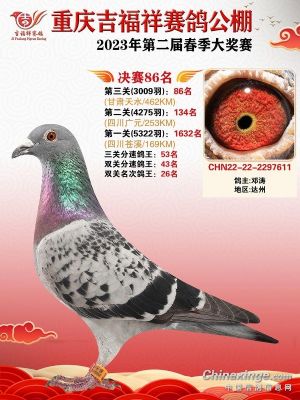 父亲是北线公棚485名,母亲是南线公棚三关鸽王季军,出的小鸽子南北线公棚各交一只。