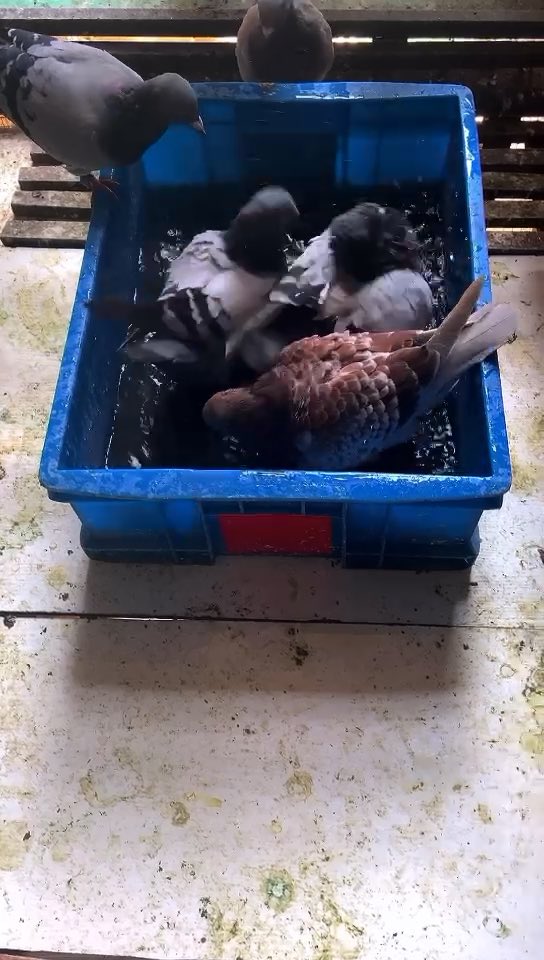 3、鸽子感染期间禁止洗澡, 感染单眼伤风的病鸽会由于眼部不适应而用自己的翅部摩擦眼部、病菌和潮湿的眼水粘附在羽毛上,并且病菌会附着在洗澡盆内在给其它鸽子洗澡时易引发感染。