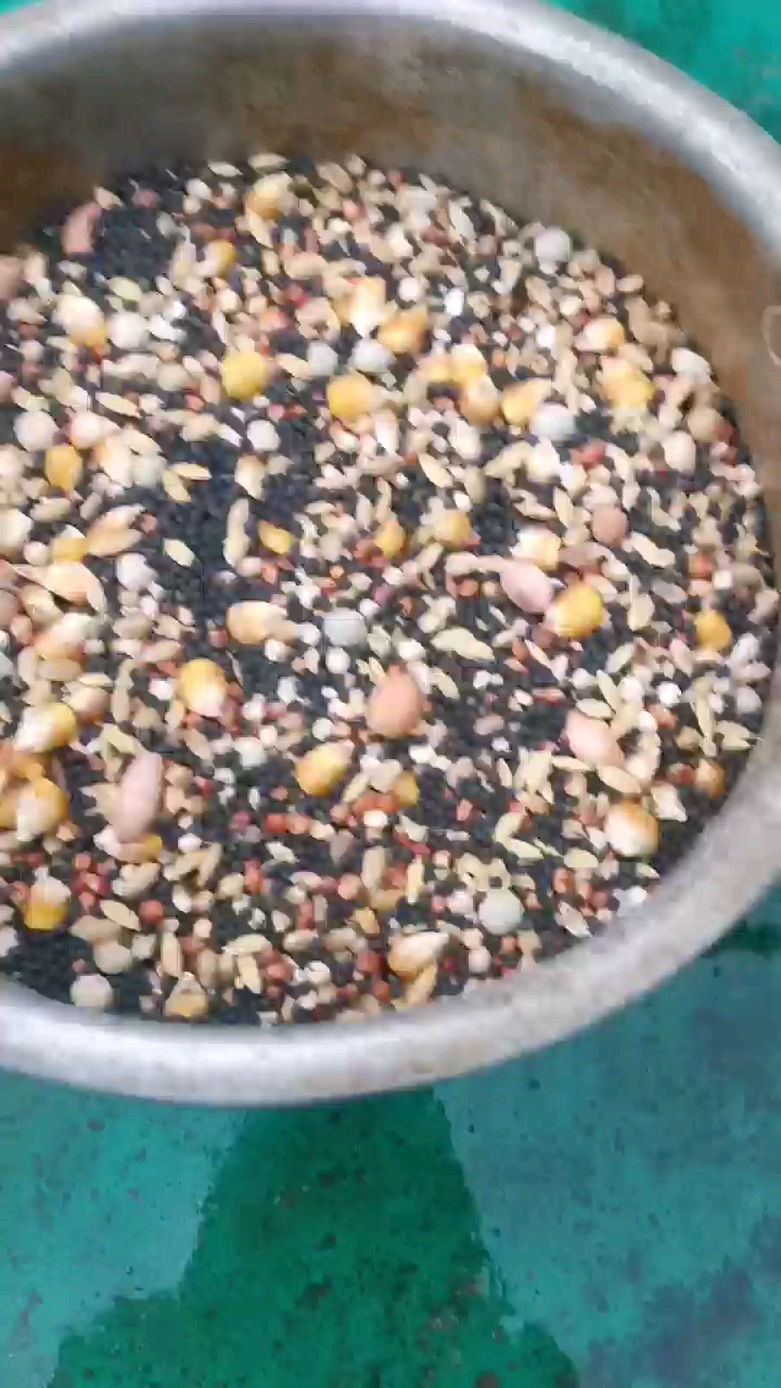 从前天晚上开始下雨,昨天下了一整天没放鸽子飞,今天早晨还在继续又没放成鸽子,随便打扫一下卫生就开始喂鸽子了。 今天早晨没有放鸽子飞,配了些混合饲料喂鸽子,营养小饲料小麦白红高粱白花籽60%,玉米豌豆花生油菜籽占比30%,清除饲料稻谷大麦占比10%以内喂3一4成饱。 现在换羽已处在后期,早晨这一餐适当增加点能量饲料和油料,减少清除饲料稻谷和大麦配比量,早餐清除饲料从换羽初期10%,一路到换羽高峰期占比70%,然后在到现在的换羽后期10%以内,这一路增加什么减少什么饲料都是缓慢进行的,尽量不要快速改变另一种饲料配比,那样对鸽子肠道有一定负作用。