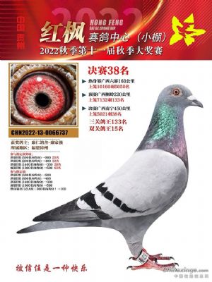这只鸽子父亲公棚决赛123名,母亲是三关鸽王7位,汽车大奖赛的亚军,平辈征程还有一只,期待有更好的发挥!
