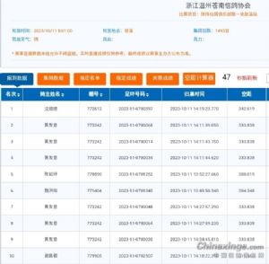 【第430集】一人前十独占六羽 温州苍南琪伟信鸽俱乐部,2023年秋季三关赛,第一关于10月11日08:01在宁波慈溪开笼,空距320公里,上笼1493羽,放飞地天气阴,从慈溪到温州苍南一路都是阴天,这是一场艰难的比赛。 最终沈细一羽环号为0700397的鸽子,于14:19:23.770归巢,空距342.619公里,分速905.4505米/分,获得冠军,黄有意的0700068、0700014、0700034分别于2023-10-11 14:11:39.050、2023-10-11 14:11:43.750和2023-10-11 14:11:44.62归巢,这三羽鸽子在5秒内报进,空距为333.838公里,分速为900.6806、900.4903和900.4550,获得亚军、季军、殿军,俱乐部当天共归巢265羽,可喜的是黄有意前十独占6羽(2、3、4、7、8、9),前100名占20羽,足见他的训养功不一般。