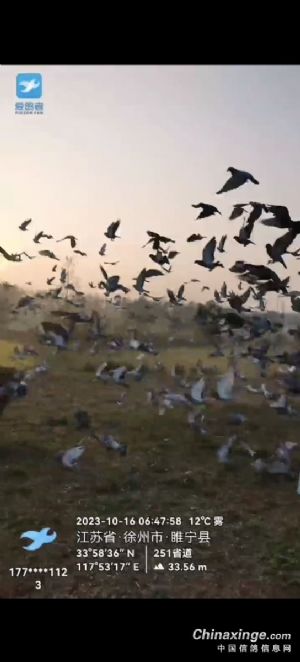 饭还没有完全到嘴,鸽子回来了。洋河站60公里分速1333米/分,睢宁96公里分速也1300米/分。晚上360公里好运。