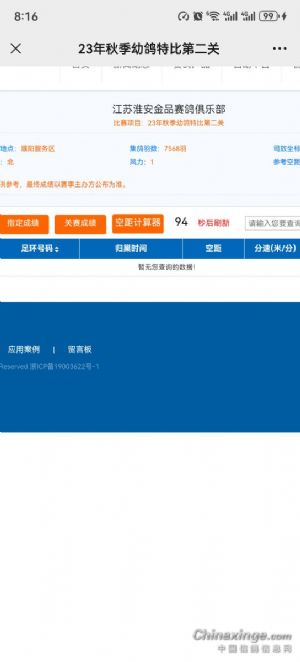 季军获得者三和鸽舍,赛鸽资料2023-26-0087459雨点砂眼雄,归巢时间14点28分58秒,比赛空距515.252km,飞行分速1259.8421米。
