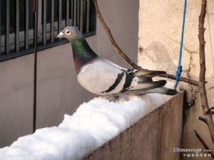 早晨上鸽舍一片白茫茫,天上还下着小雪,昨天早晨雨加雪就没放鸽子飞,早晨看雪下不是很大,咱依然而然的把鸽子放出去飞翔,虽然只有二十多分钟但是很有必要,训练几个小鸽子适应天气变化应激能力。 前段吋间最高温度达到20几度,这几天降至只有0度,对成鸽影响不算很大,尤其对刚下窝及出笼不久幼鸽危害最大,调整好鸽子的状态是关键。