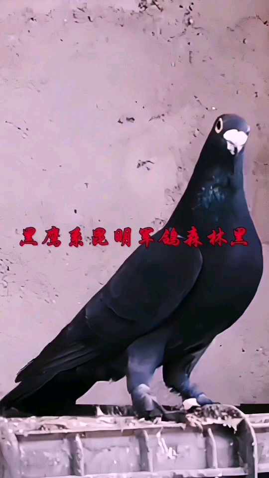 昆明军鸽森林黑黑鹰系,恶劣天气的征服者。穿云破雾,不死必归。外貌特征, 头大顶平后脑发达。 短嘴鹰鼻;大都金眼,偶有沙眼,目光犀利.明亮;脖子粗壮,散发出金属绿光。主羽翼修长、宽大包身毛薄毛紧、贴身油亮.站姿多逞半蹲状.体形中等稍大,善飞恶劣天。鹰爪、趾甲长.尖、利、弯钩.形如鹰爪.成年鸽更是威武霸气。