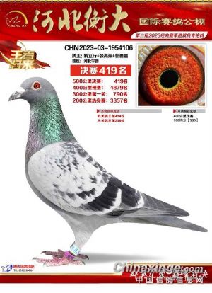 祖父:NL91-1122331(兆尊苍白)荷兰国家赛650公里14369羽总冠军!荷兰NPO全国总冠军!22次获奖3次冠军!