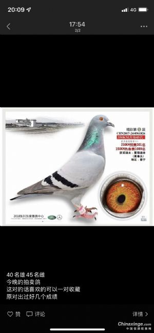 今年是全新配对没有往年回对配,种鸽没参加过比赛鸽子有些多,除了3羽图一三四参加过比赛,剩下5羽都没有参加过比赛,而且有一对砂眼近亲回血X砂眼近亲回血,2羽鸽子从没出门半步路直接留种,玩鸽子就是要不段寻找突破途径,本人拍照技术水平有限,实际鸽眼比照片还要好一些,光有好的鸽眼其他指标不合格也不行,玩鸽子最重要的是头脑,外在条件在好头脑不好,那这只鸽子基本上就报废了。