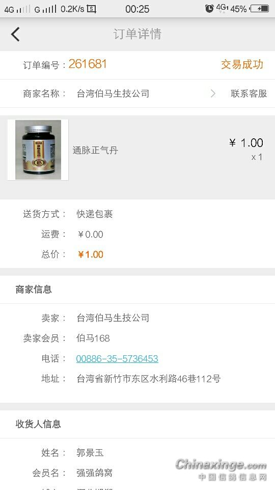感谢伯马生物科技有限公司,通脉正气丹已试用效果不错。祝中信网越来越好