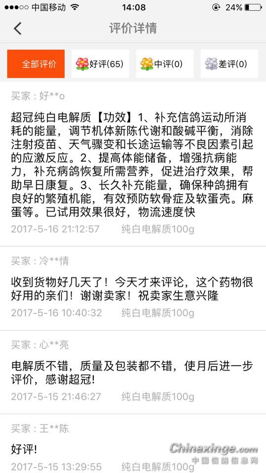 感谢先锋鸽药,感谢中信网,试用效果不错