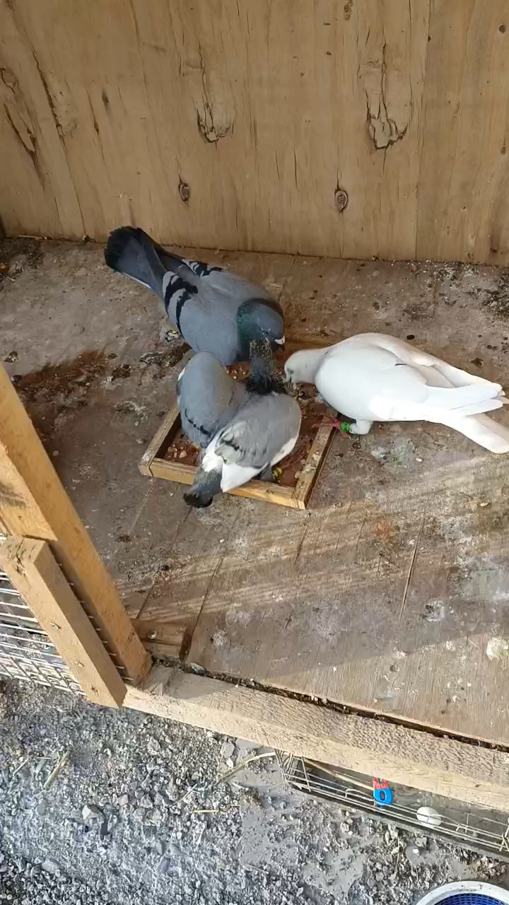早晨上鸽舍晴到多云天气,把小鸽子放出去透透新鲜空气,飞翔半个多小时就招回喂食水,天转好一些了早晨又搞的马齿笕喂鸽子。 前段时间雨水多持续时间长,天气转好几个保健砂盒子有些潮湿,容易滋生细菌,拿到太阳底下暴晒一整天,饮水器两叁天就要用高锰酸钾消毒一次,长时间阴雨天总有小鸽子打差,单独治疗能恢复的就保留,反复打差不能及时恢复就要淘汰。