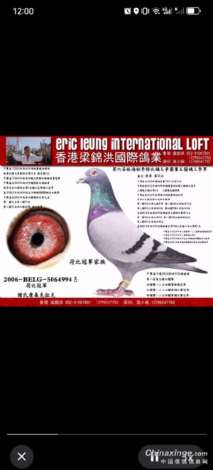二零一二年见一只香港梁锦鸿的大雄如获至宝,便花三百大洋购得。一三年冬出两雌佩戴一四年足环。中间也质疑过广东公棚的鸽子怎么到的天津,但以自己浅薄的知识足环应该是真的,在官网询血统未果。我对自己养过的鸽子很有感情!而且特征特点甚至性格都能记住,现在时不时还能跟鸽友提起哪年哪年你抓过一个“ 康氏醋业”的天落等等等等。时光荏苒岁月穿梭,十二年过去了,这只雄鸽已经不在了,我也从一个懵懂无知的少年长成能独当一面且二百三十斤的男性。也开始打公棚,就把这只大雄跟我的故事权当是一段美好幸福的回忆,每每回想都感觉因为这只大雄我的青年时代才变得幸福,我才能理解为什么有人管自己的宠物叫儿子。今天我猛然刷到梁锦鸿先生的快手,思绪如潮萦绕翻滚,十二年往事历历在目又上心头,突然一图片映入眼帘,原地怔住!仿佛又见大雄,看血统书荷比冠军?谢氏詹森克拉克,哦!仿佛我十二年前捡的锈锁突然得到钥匙!