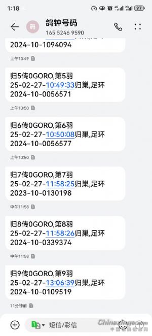 晚生鸽十公里训放,初试牛犊,晚上查看全部归巢。