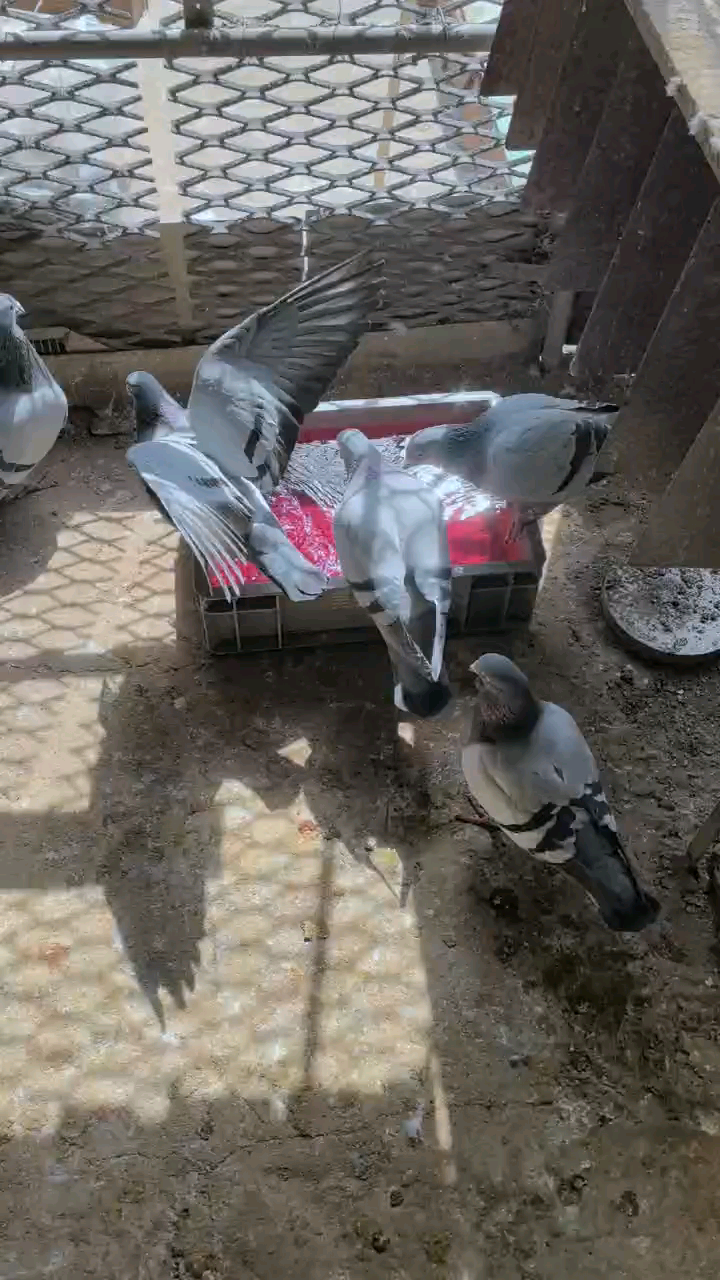 已有近半个月没给鸽子洗澡了,早晨第二次座笼训练,鸽子羽毛脚爪沾的鸽子粪,中午天气晴朗打了点水,给小鸽子洗个澡消消毒杀杀菌,种赛鸽舍加水里适量的医用高锰酸钾片,赛鸽舍盆小鸽子多,中途驱赶了5,6次添加几次水,看日历后天24节气雨水,预报未来半个多月都是阴雨天,提前做好预案也是个重要环节。