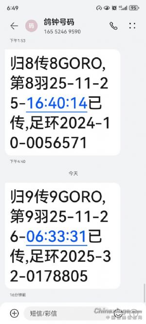 早上6点33第一羽特比环回来了,日出时间是6点47。昨天肯定就在家附近,是棚里第一次在日出前回来的鸽子