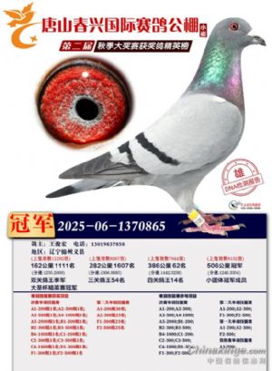 唐山春兴国际赛鸽公棚(小棚)2025年第二届秋季决赛前九位欣赏。