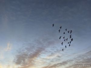 下午好! 忙了一个上午,只有这一会才有点空,早晨7点半上鸽舍天气格外的晴朗,天气转好了温度零下2度,上鸽舍西北风刮的有点冷的感觉,鸽子放出去自由飞翔,飞1小时就拿下训练旗,小鸽子迟迟不肯落舍,原来南边洪老师的鸽子也飞过来伴飞。