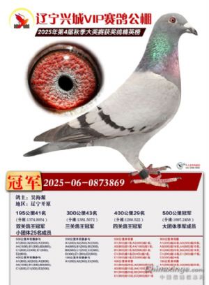 辽宁兴城VIP赛鸽公棚2025年秋季大奖赛决赛前九位欣赏。