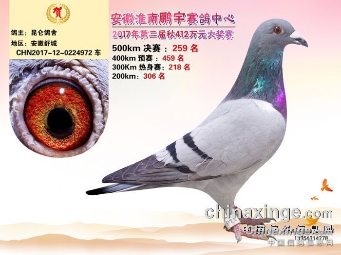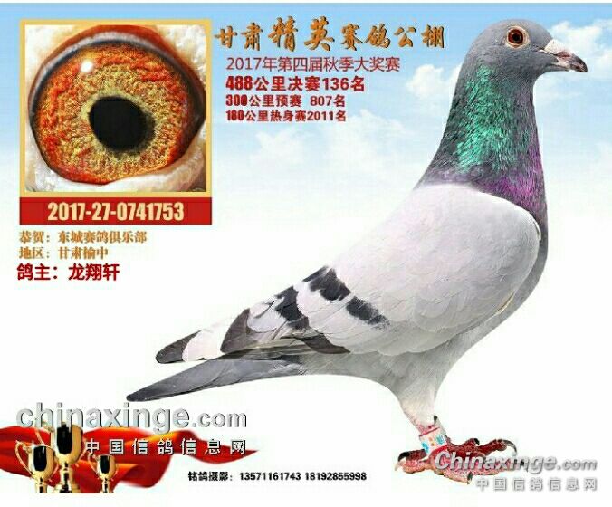 养赛鸽不可能守株待兔,但有些经验和规律还是必须去遵循。就鸽子获奖而言;能获得到成绩或者是好成绩,这不仅仅是鸽子自身体质与状态的表现,更多动力还是源自于它们父母的优秀血缘,但这种优秀血缘,也离不开饲养者的精心观察与巧配。赛绩鸽配回血鸽,是我在配对当中、最常用的一种方式,参与这种方式配对的鸽子,有些属于杂交配,但有些人因为常年不引进鸽子的原故,这种配法也可能还躲不开近亲配。但这种方式不论是掺杂着杂交还是近亲配,多年来的操作与结果,充分证明了这种方式可以用。所以说,不论你在养鸽子的道路上多么固执和反对,但有些方法不能不偷偷去尝试。以下图鸽是一羽今年的公棚获奖鸽,以及它的父母亲,它的母亲是一羽2016年公棚决赛的第十七名,它的父亲是一羽2008年出生的双回血种雄鸽,终身未参赛,也没有一次出棚去家飞,但它自己至今已作育出了很多前名次及获奖鸽,其中就包括;1000km亚军、600km九名、500km冠军、300km冠军,以及图中的这羽公棚四关赛决赛第255名等等。