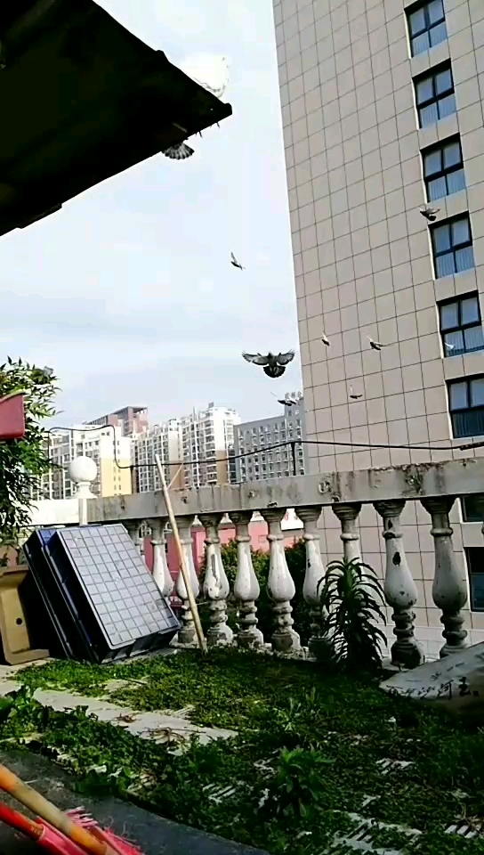 三家训放的鸽子,有两个都落到我们家来了,停了一会飞了