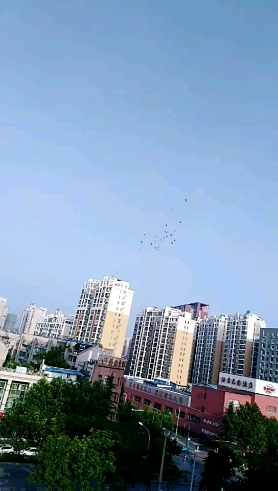 红旗飘飘晨风漾,鸽儿懒懒半飞翔。