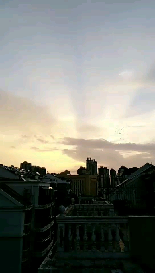 雨后的清晨还是凉爽的,放出鸽子,目光在空中追逐,朝霞穿透云层喷瀑而出,将一抹金色尽染天地,美仑美幻。鸽儿奋力煽动双翅遨游在霞光里,义无反顾地飞向远方,消失在天际的尽头。