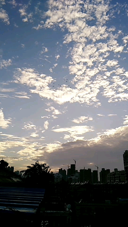 天终于放晴了,关了一天的鸽子憋坏了,放出去的鸽子像冲出了牢笼,转眼就没了影子。